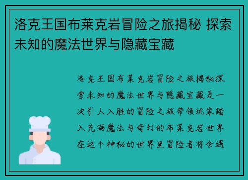 洛克王国布莱克岩冒险之旅揭秘 探索未知的魔法世界与隐藏宝藏